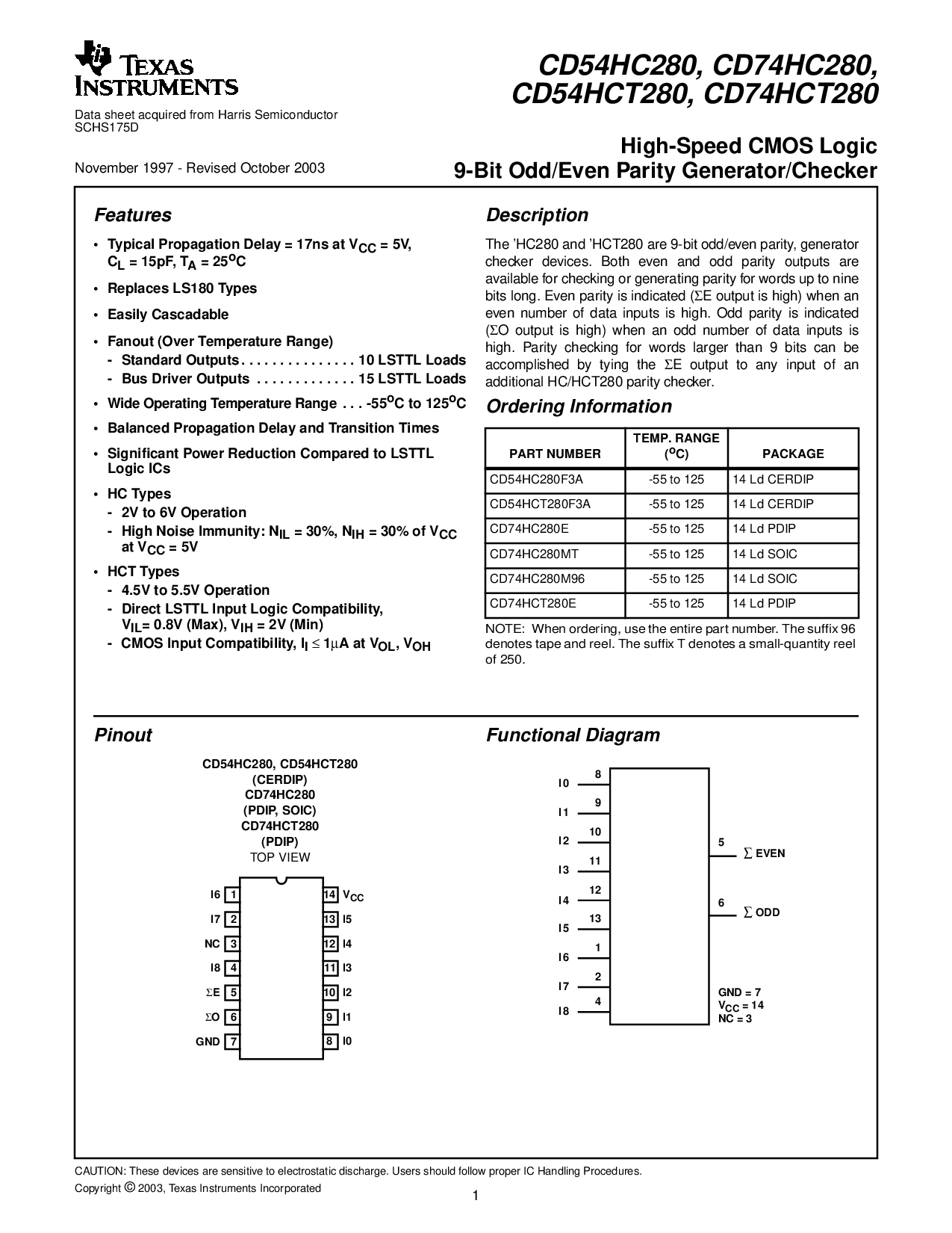 CD54HC280F3A -55 至 125 14 ld cerdip
