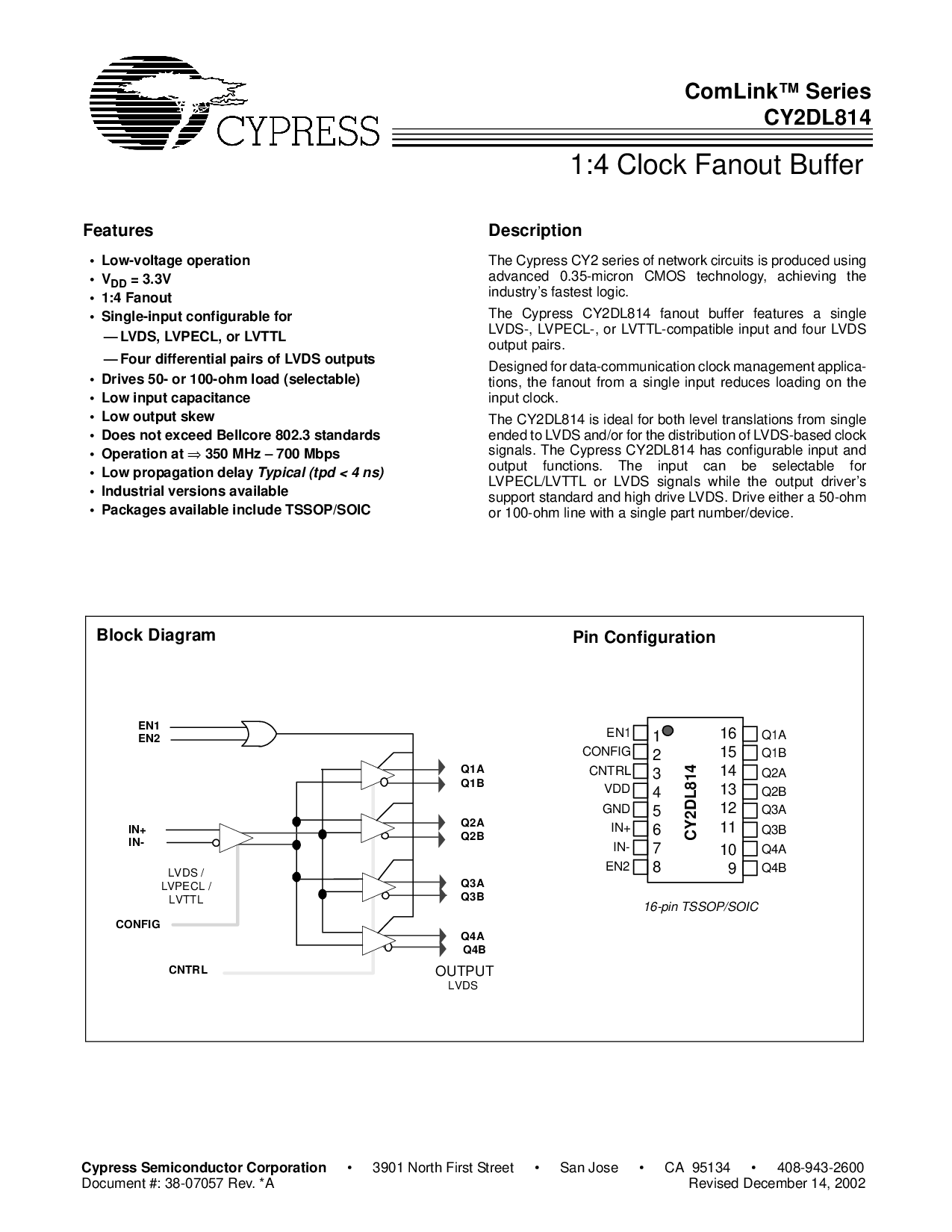 这 柏树 cy2dl814 扇出 缓冲区 特点 一个 单独