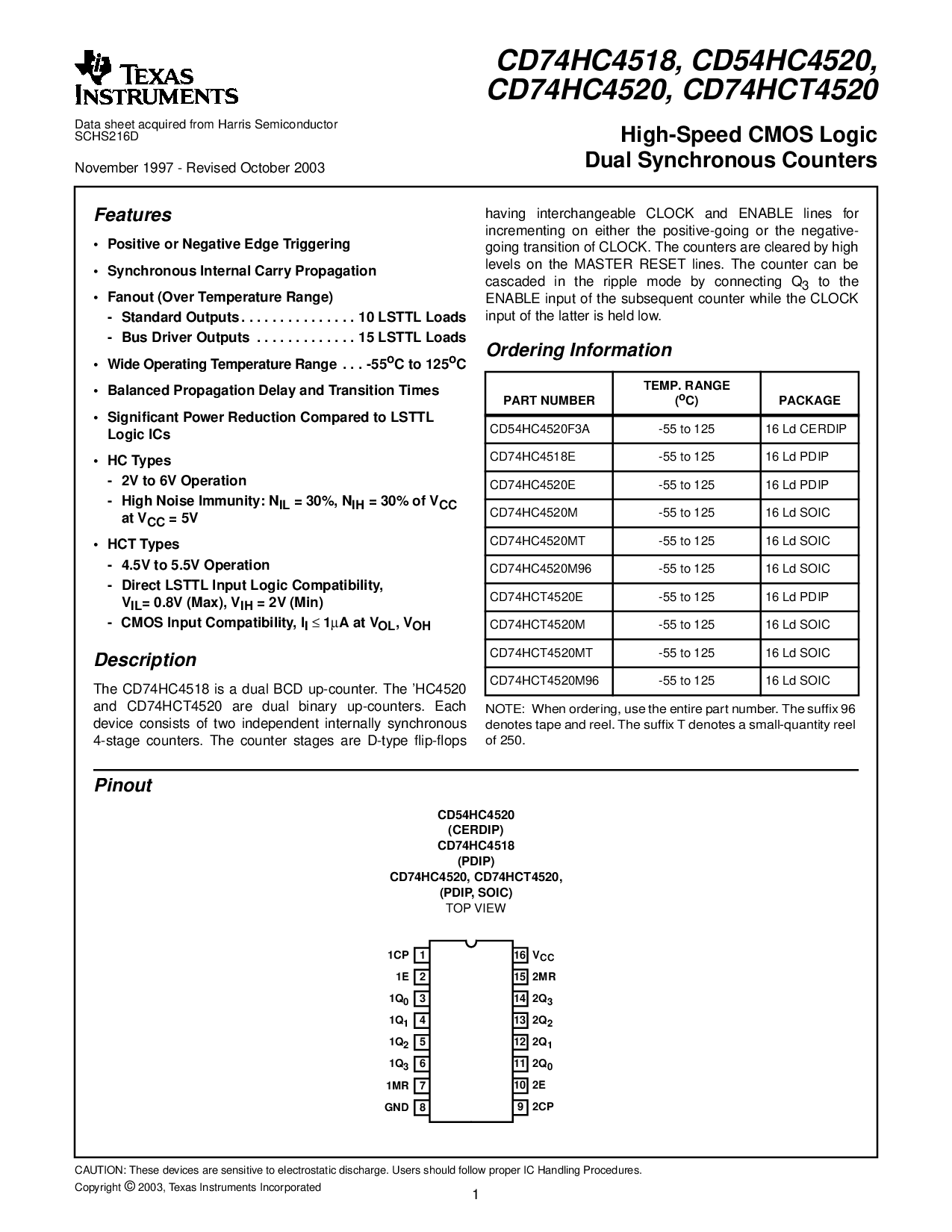 CD74HC4518 一个 bcd 向上-计数器. ’HC4520