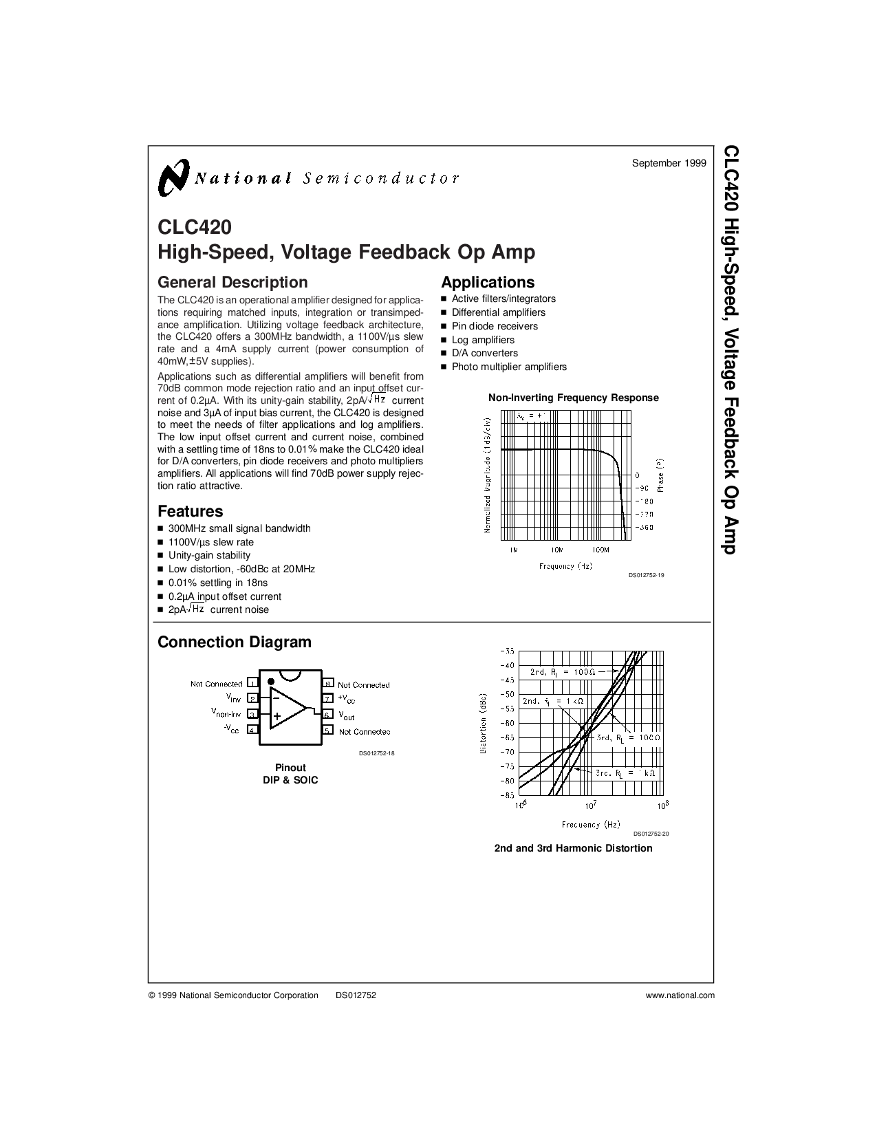 这 CLC420 优惠 一个 300MHz 带宽, 一个 1100v/µs 回转