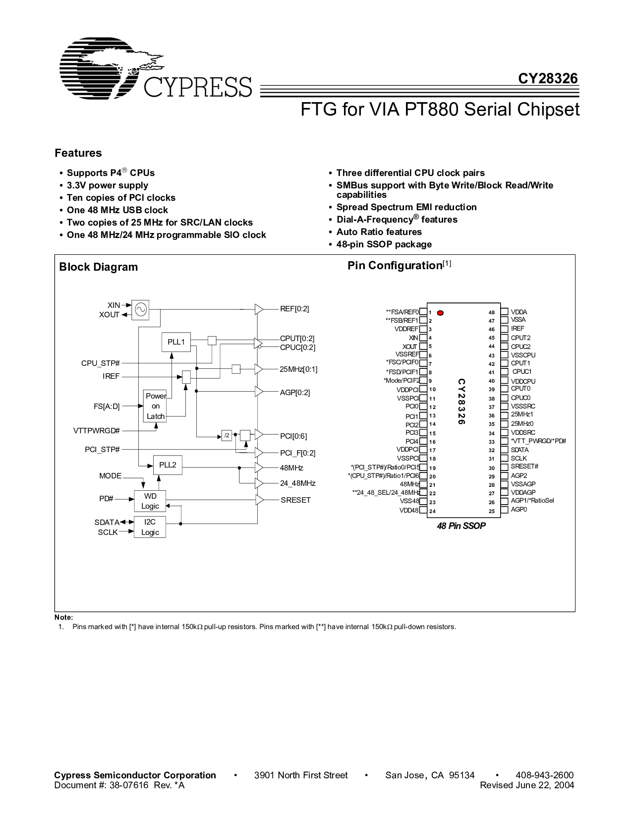 浏览型号CY28326OXCT的Datasheet PDF文件第2页