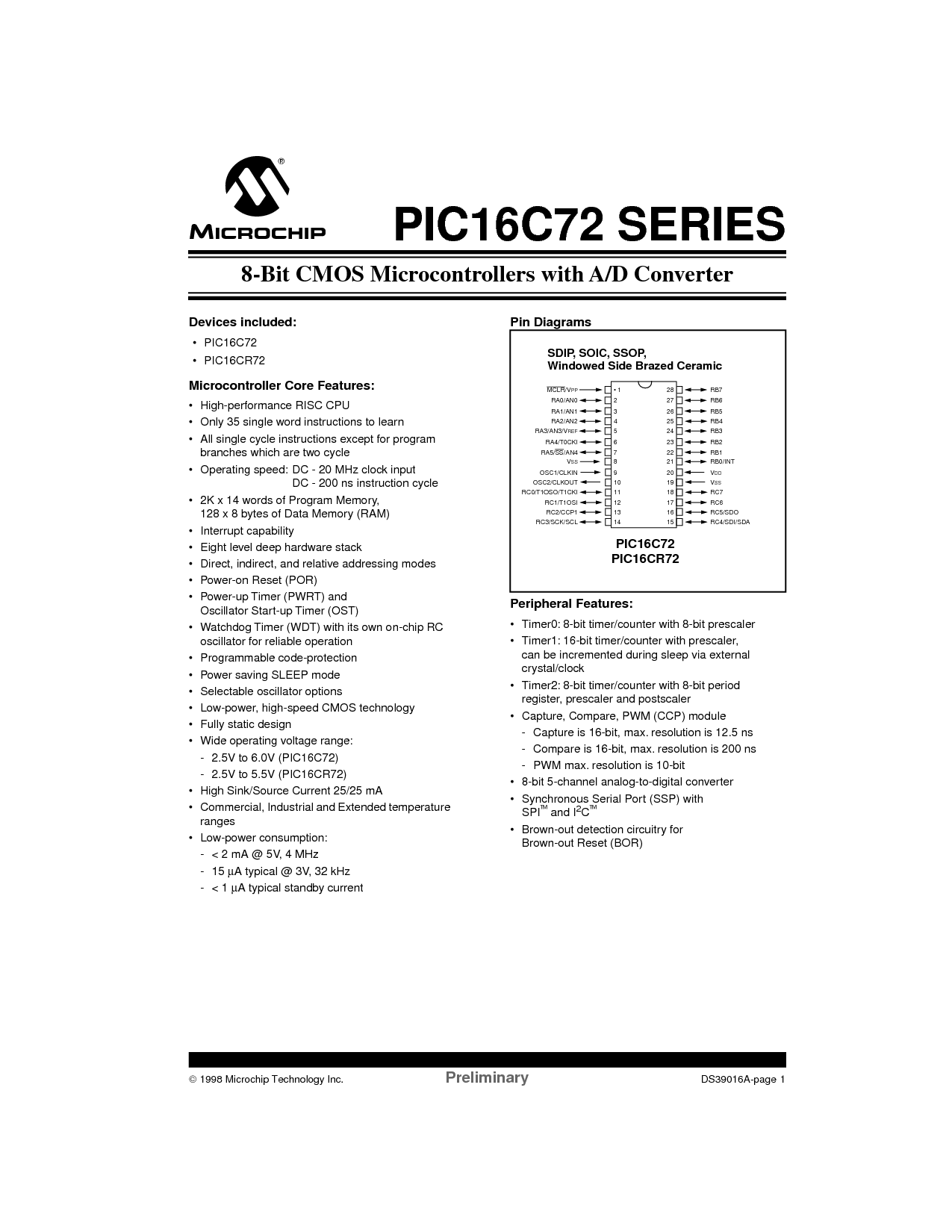 浏览型号PIC16C72-10E/SP的Datasheet PDF文件第2页
