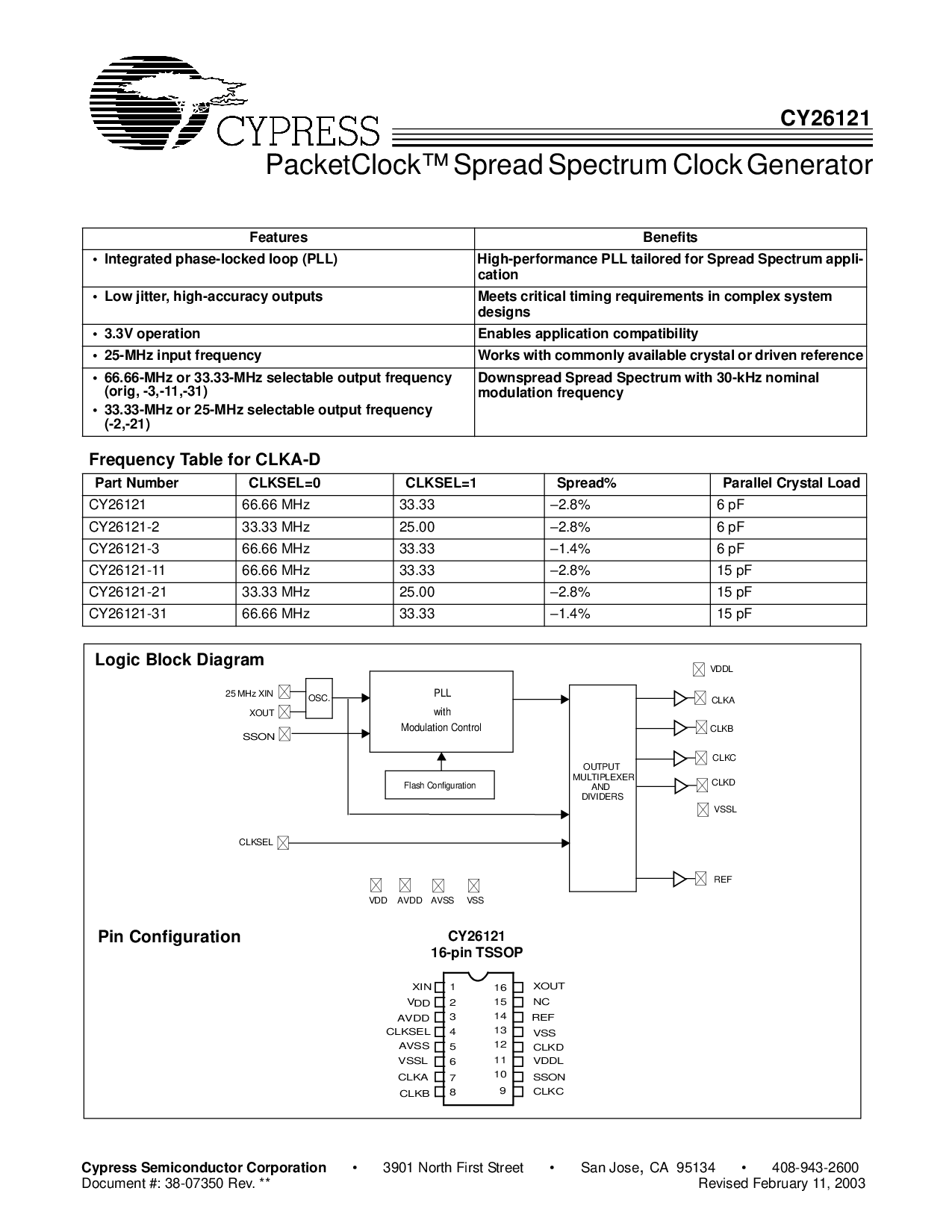 浏览型号CY26121-31的Datasheet PDF文件第3页