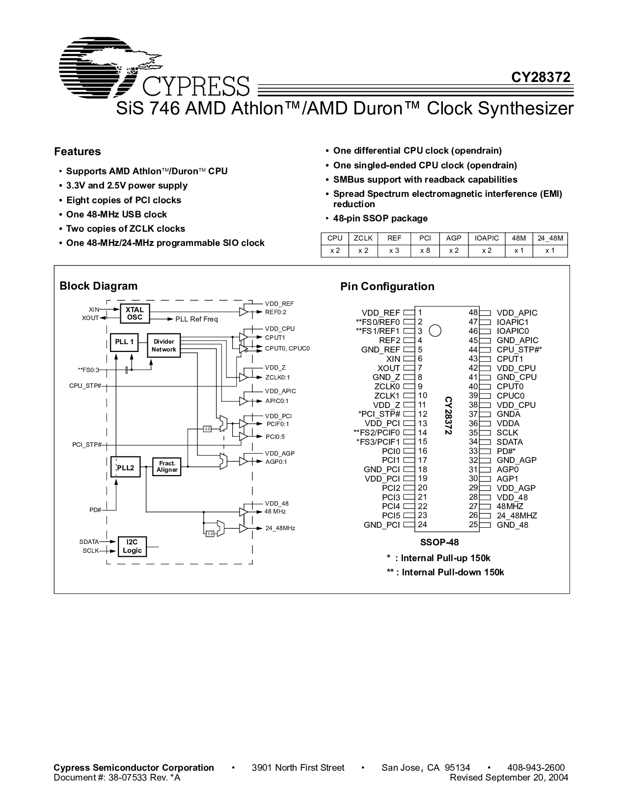 文件 #: 38-07533 rev. *a 修订 九月 20, 2004