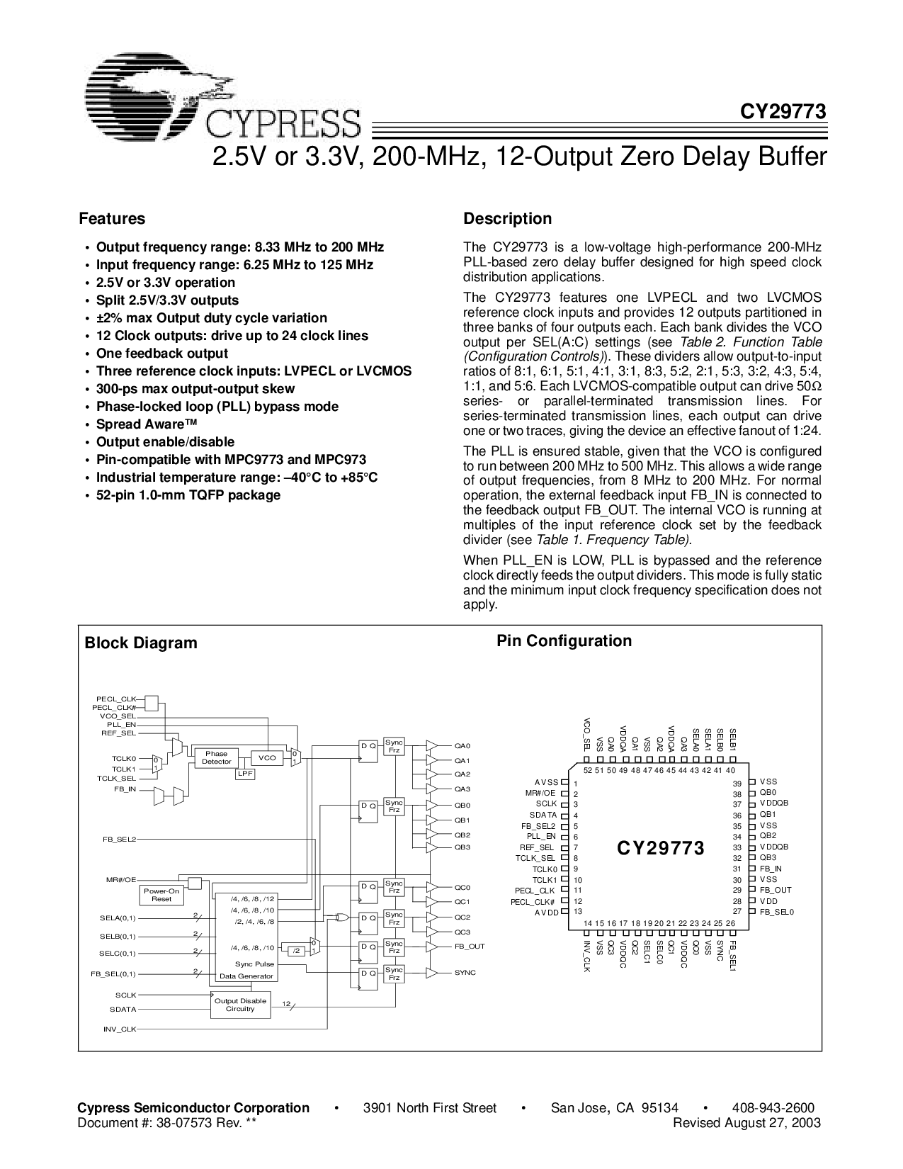 这 cy29773 是 一个 低电压 高性能 200-mhz