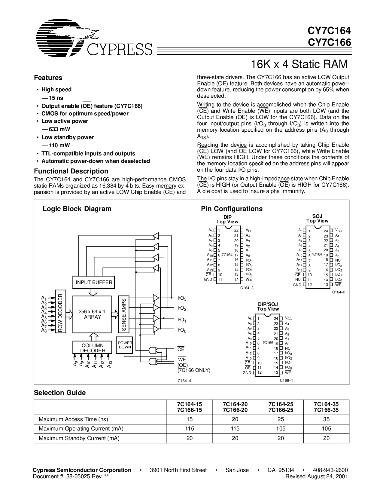浏览型号CY7C166-25VC的Datasheet PDF文件第4页