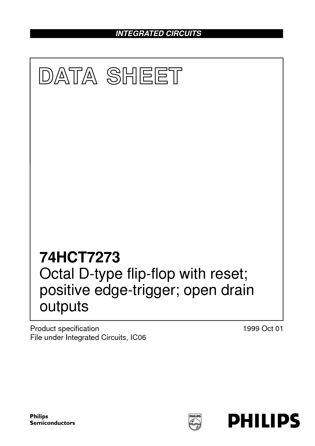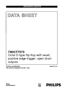 dat一个shEET 产品 Speci 文件 下 综合 电路, ic06 1999 Oct 01 综合 电路 74HCT7273 八进制 d-类型 触发器 与 重置; 正 边缘-触发器; 打开 排水管 产出 | |