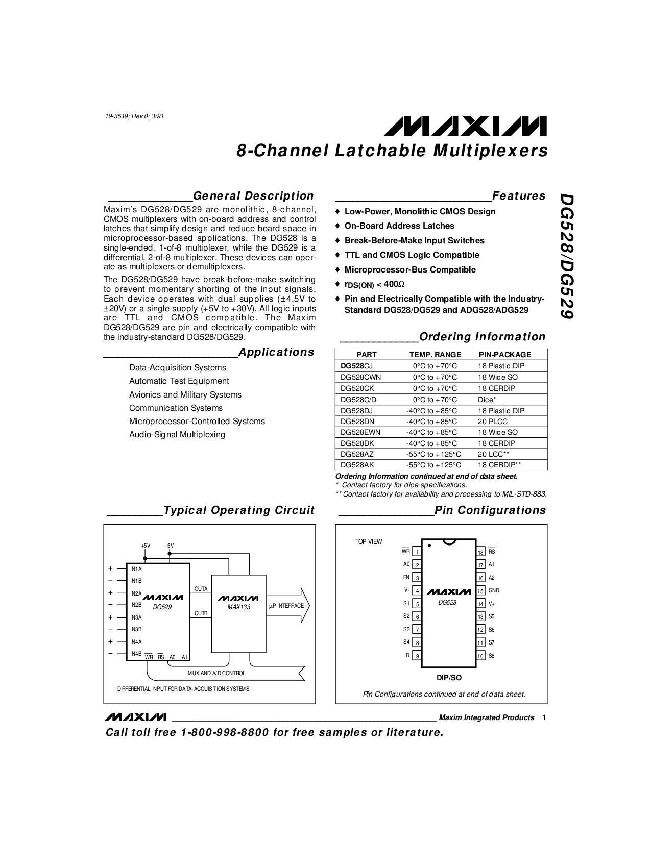 单独-已结束, 1-的-8 多路复用器, 同时 这 dg529 是 一个