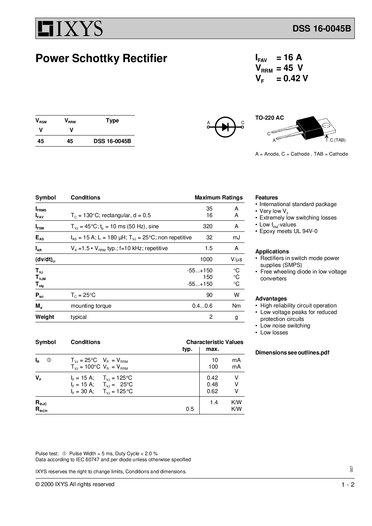 ixys 储备金 这 右侧 至 变更 限制, 条件 和 尺寸.