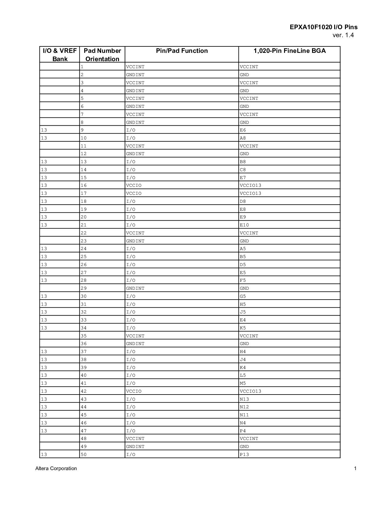 管脚/衬垫 功能 1,020-管脚 fineline bga