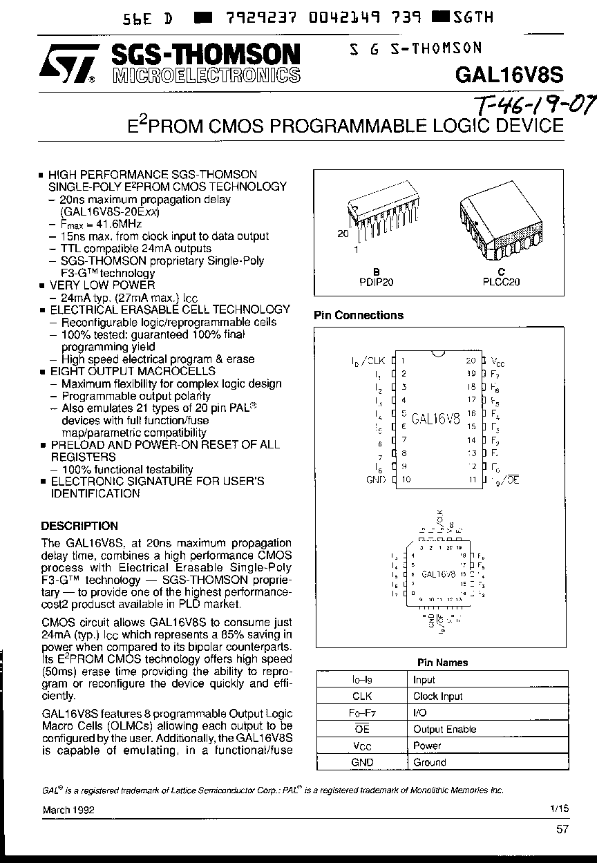E2PROM CMOS PROGRAMMABLE LOGIC DEVICE