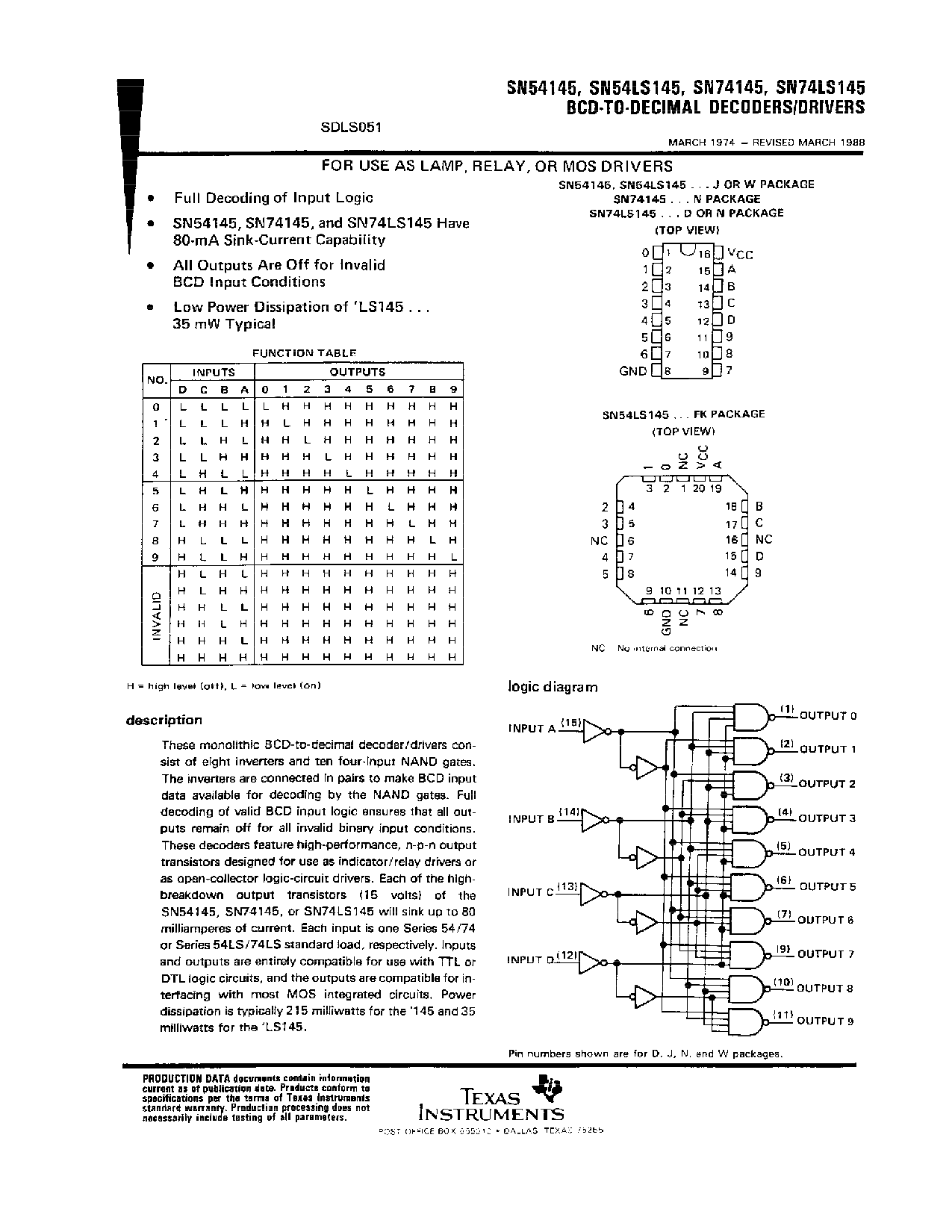 BCD-TO-DECIMAL DECODERS/DRIVERS