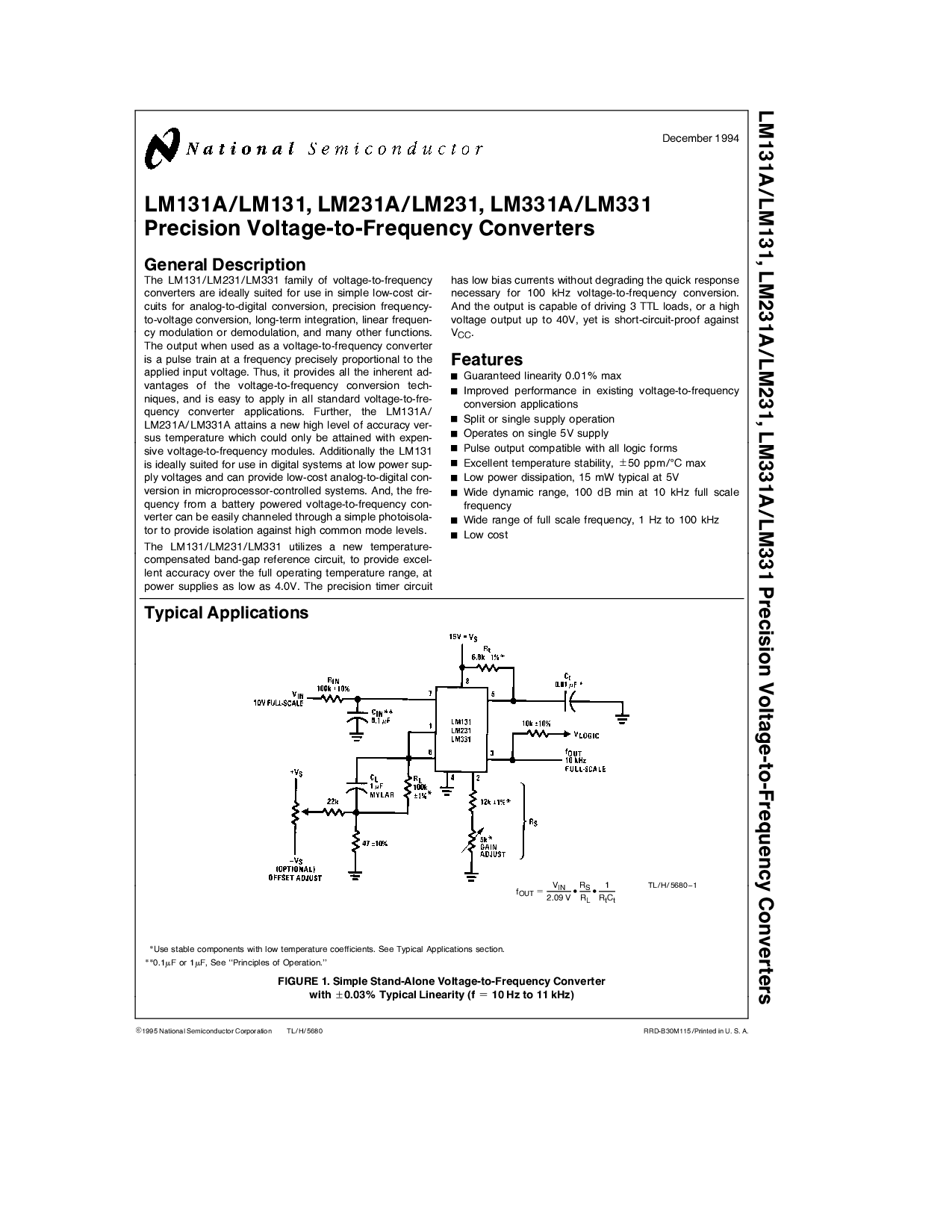 LM131ALM131 LM231ALM231 LM331ALM331 精度 电压-频率 转换器