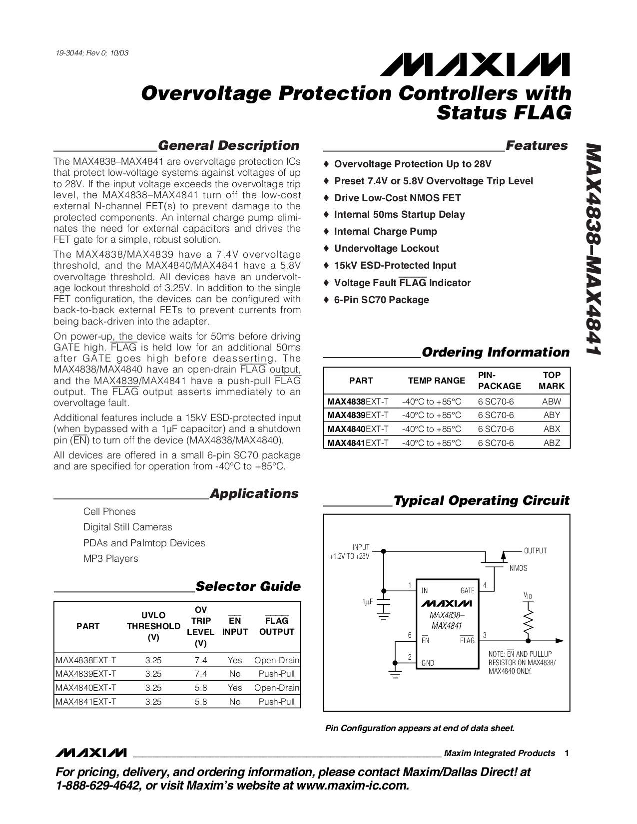 阈值, 和 这 max4840/max4841 有 一个 5.8v