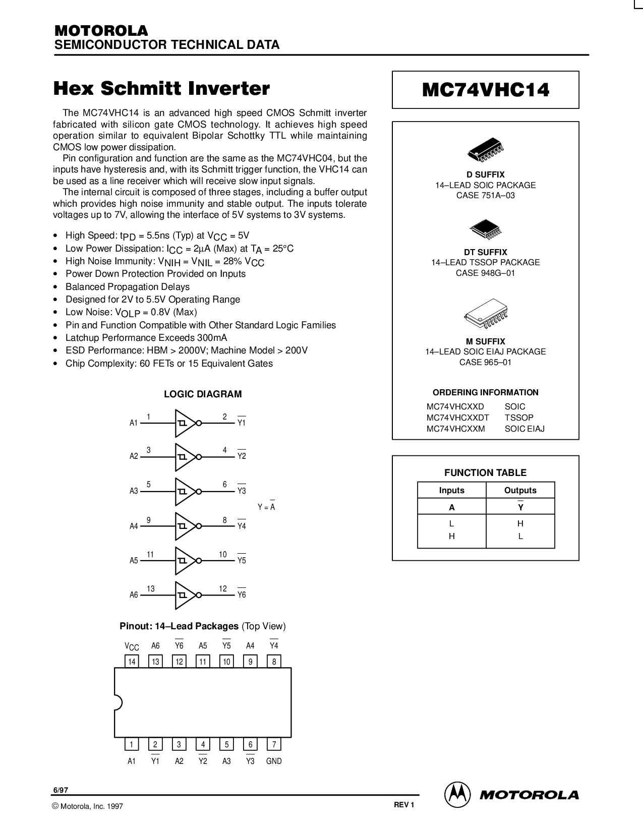 浏览型号MC74VHC14DT的Datasheet PDF文件第2页