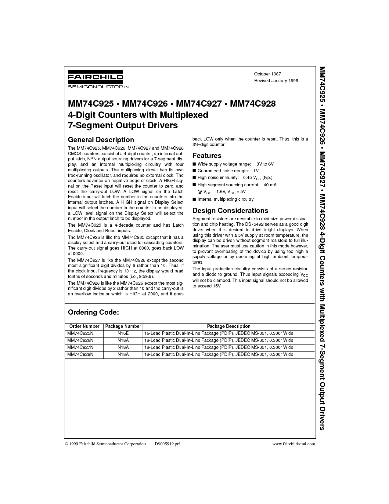 mm74c925 • mm74c926 • mm74c927 • mm74c928