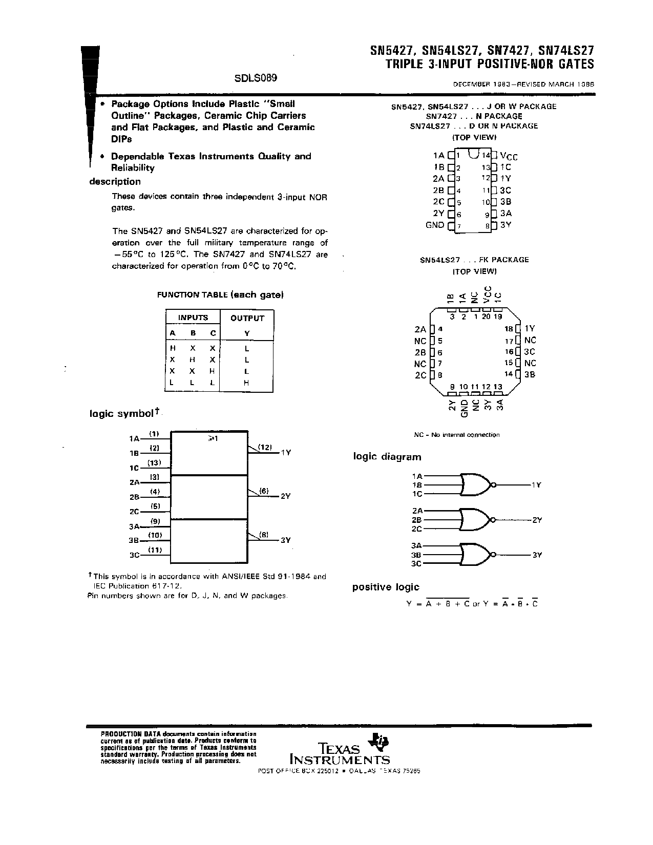 TRIPLE 3-INPUT POSITIVE-NOR GATES