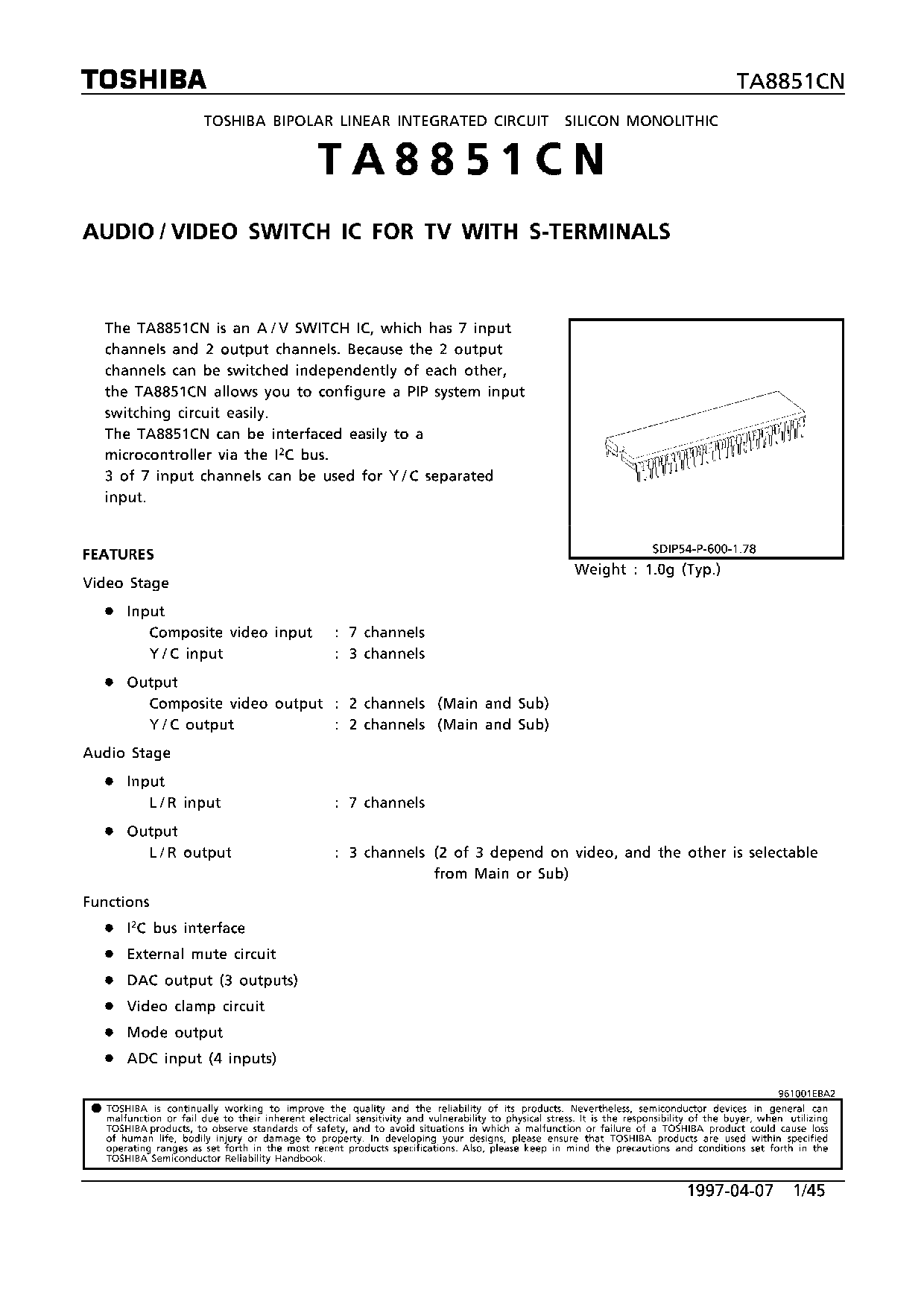 AUDIO/VIDEO SWITCH IC FOR TV WITH S-TERMINALS
