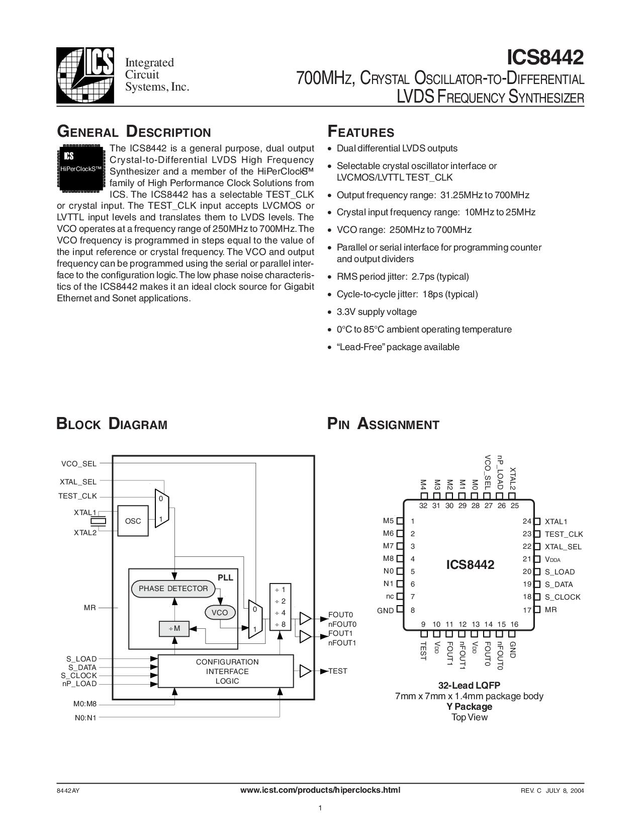 ics. 这 ics8442 有 一个 可选择 测试一下_clk