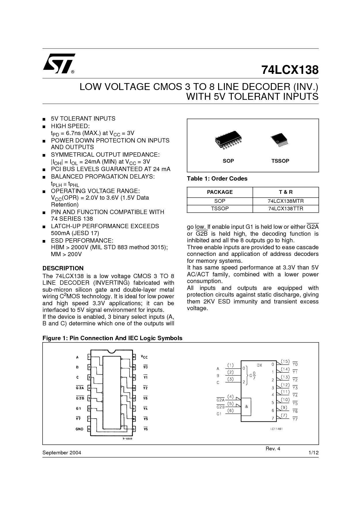 LOW VOLTAGE CMOS 3 TO 8 LINE DECODER (INV) WITH 5V TOLERANT INPUTS