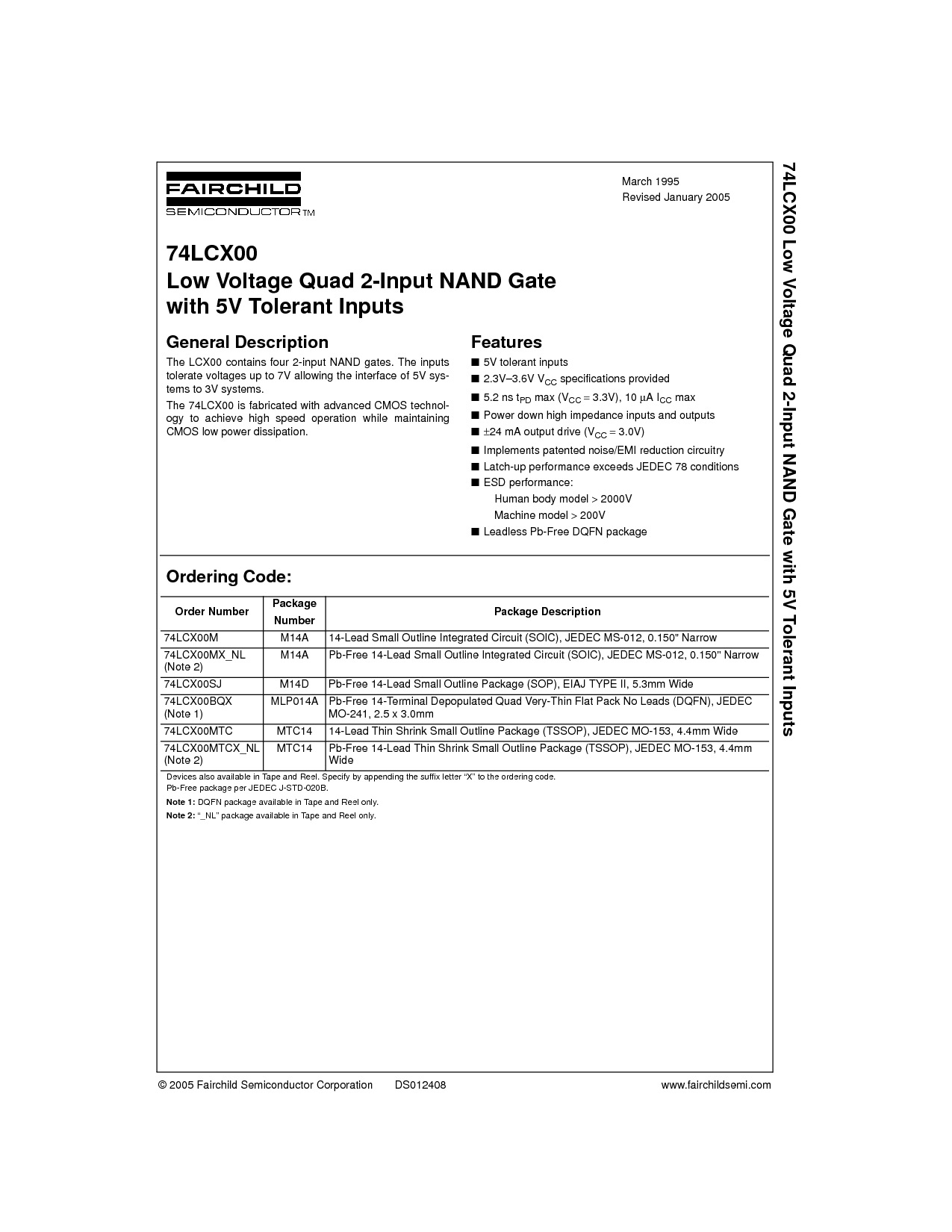 74LCX00SJ M14D 铅-免费 14-铅 小 大纲 包装 (sop), eiaj 类型 二, 5.3mm 宽