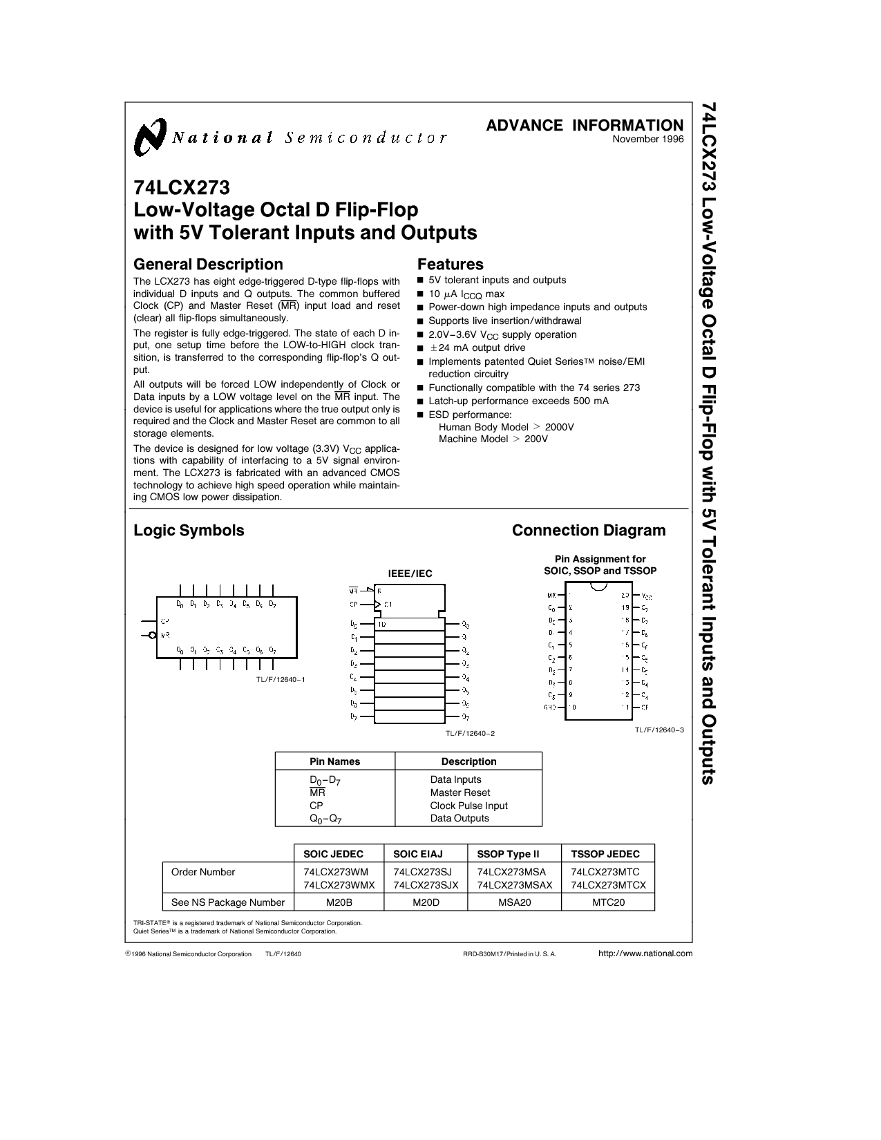 74LCX273WMX 74LCX273SJX 74LCX273MSAX 74LCX273MTCX