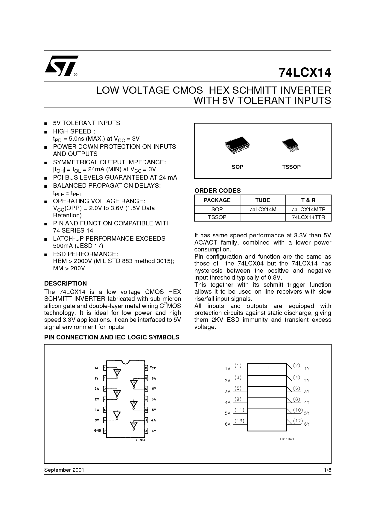 这 74lcx14 是 一个 低 电压 cmos 十六进制
