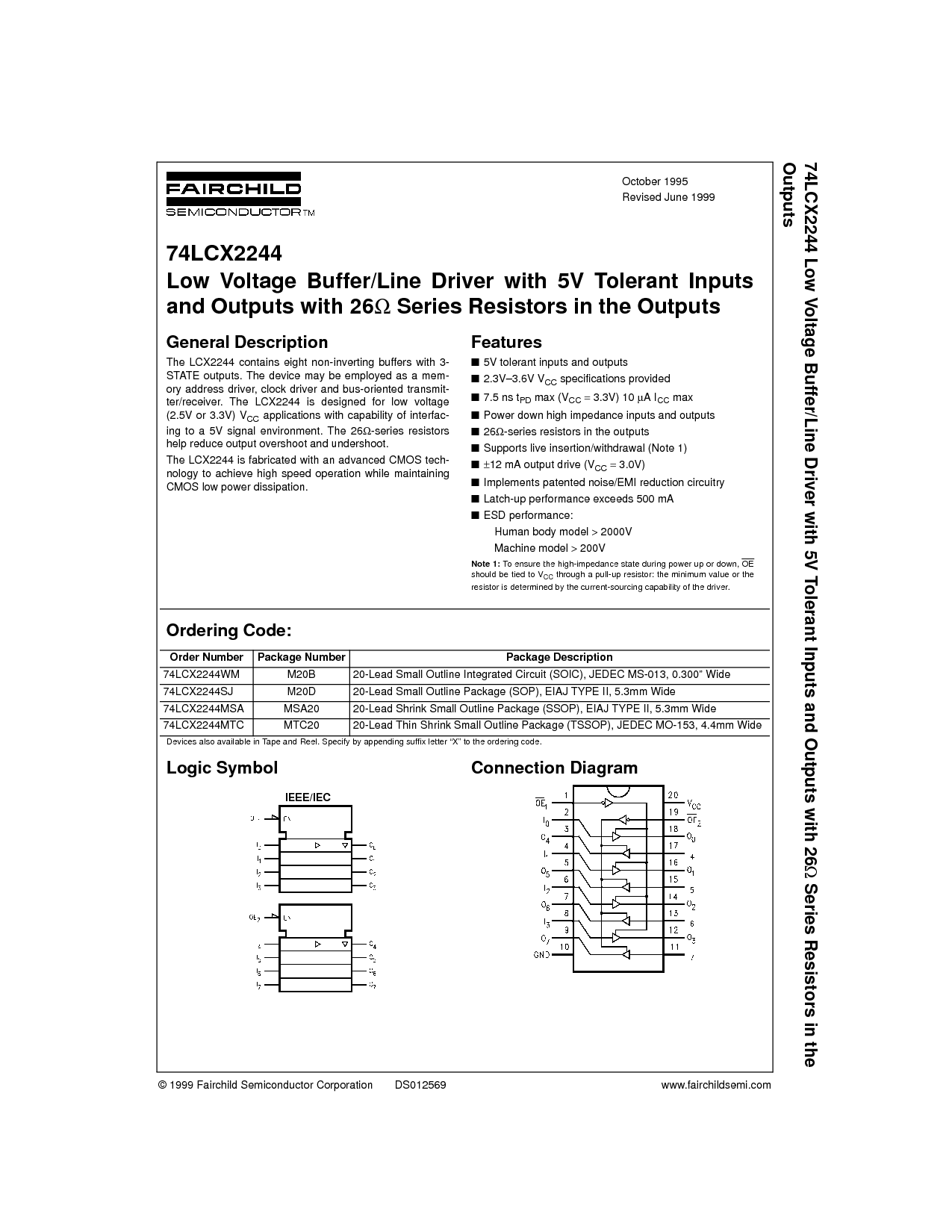 Low Voltage Buffer/Line Driver with 5V Tolerant Inputs and Outputs with 26W Series Resistors in the Outputs
