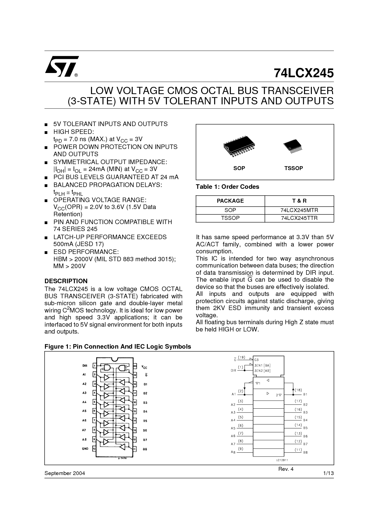 这 74lcx245 是 一个 低 电压 cmos 八进制