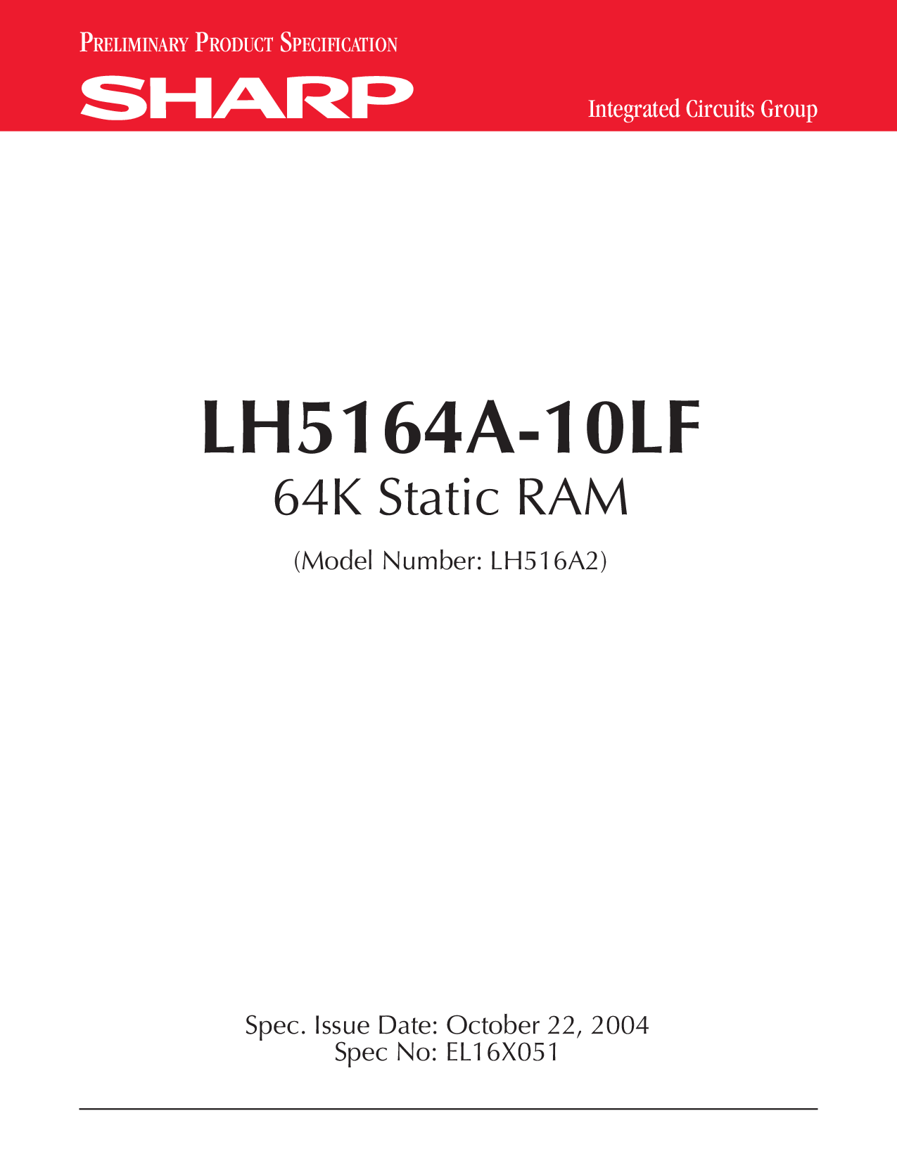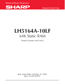 p RELIMINARY p RODUCT s 具体化 综合 电路 集团 lh5164a-10lf 64k 静态 ram (型号 号码: lh516a2) 规格. 问题 日期: october 22, 2004 规格 否: el16x051 | |