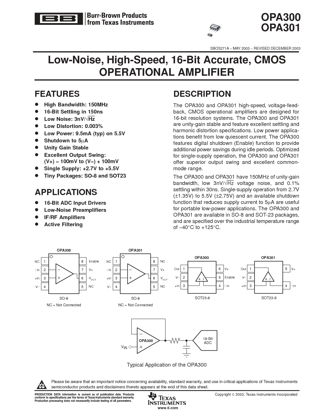 16-有点 分辨率 系统. 这 opa300 和 opa301